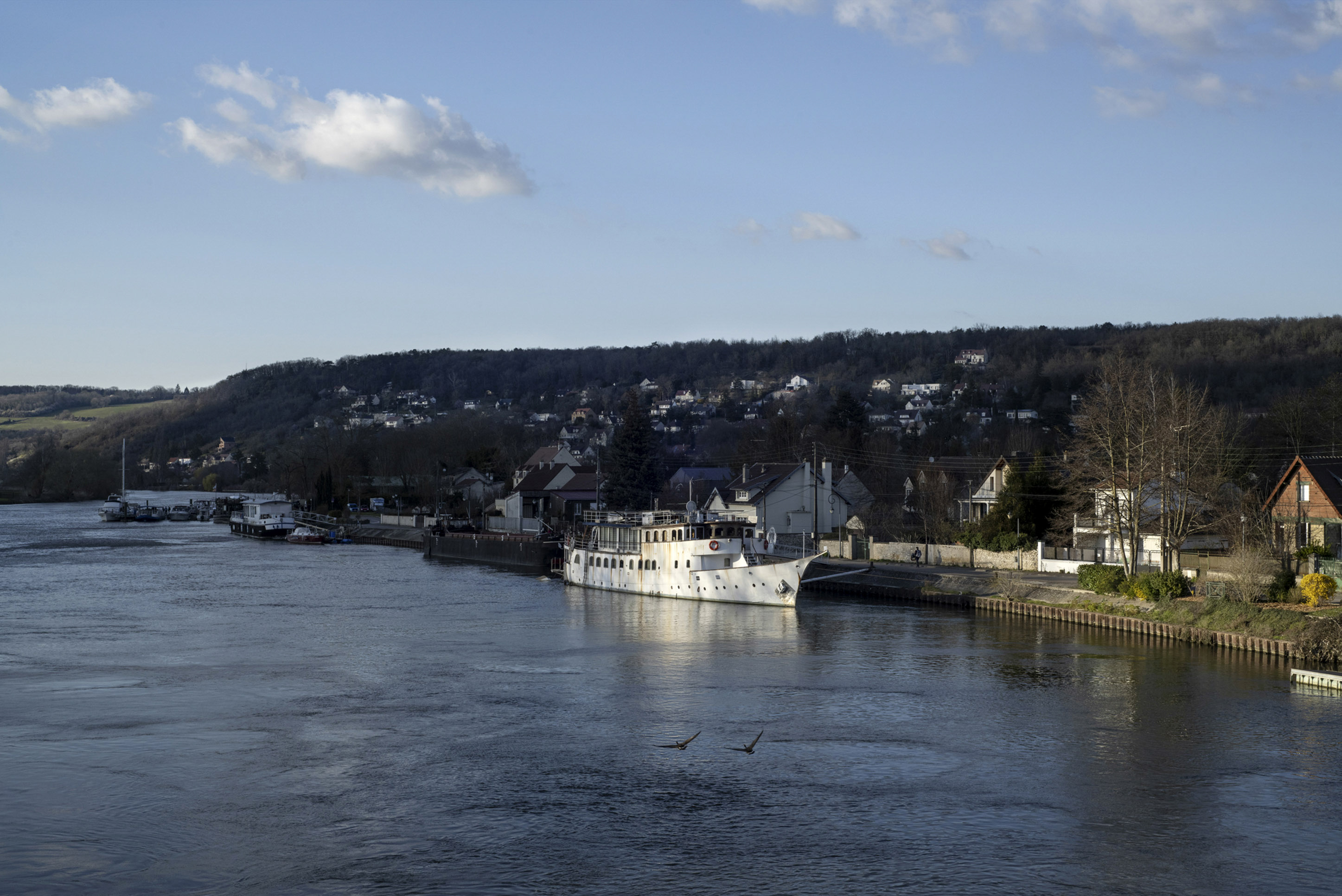 L'Amazone, ancien yacht de Chrurchill sur le quai aux Vins de Limay, Mantes-la-Jolie